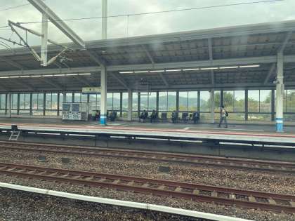 福山駅を出発しました。天気は曇りです。