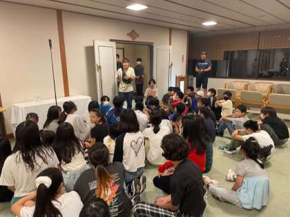 食事前の説明です。空気を作ってしっかり先生の話を聞いています。