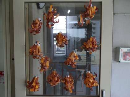 「ふれあいコンサート」を2週間後に控え、各学年で制作した飾りを貼りだしました!