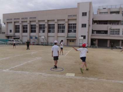 ティーボールの最後の学習で、大地組VS太陽組で試合をしました。