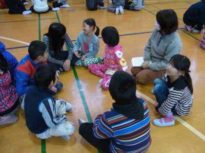 今日も子どもたちの元気な声が、講堂中いっぱいに広がります。