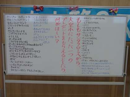 「もしもサンタクロースから、大空小にたった一つのプレゼントをもらえるとしたら、何がほしい?」