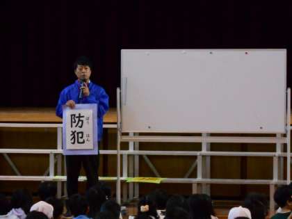 今日の全校朝会では校長先生から防犯についてお話がありました。自分の命を守るためにできること登校時、帰宅時や帰宅後の時は「いかのおすし」、お留守番の時は「いいゆだなあ」を気を付けようというお話でした。