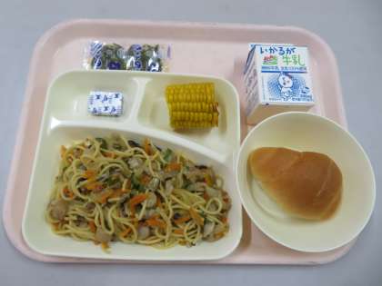 ・ウインナーときのこの和風スパゲッティ(きざみのり)