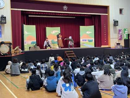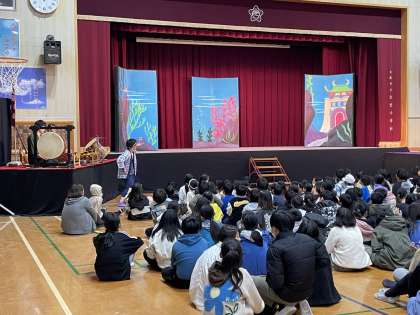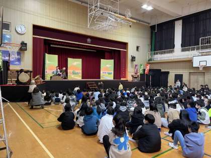 今日の3.4時間目劇団コーロさんによる芸術鑑賞「天満のとらやん」の上演がありました。軽やかな語りと20種類のお囃子の魅力がたくさん感じられた素晴らしい劇でした。子どもたちも話の世界に引き込まれていました。