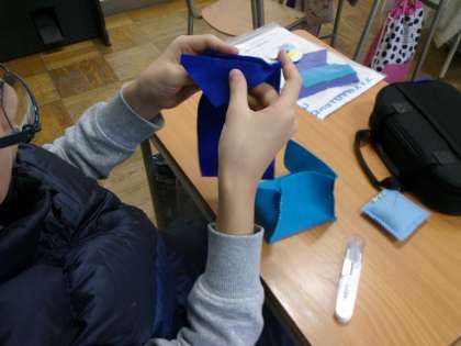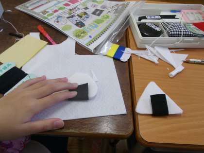 おにぎりの形をしたキーホルダーや、フェルト糸を編んだミサンガ、立体的な作品など、みんな思い思いに工夫を凝らしていました。