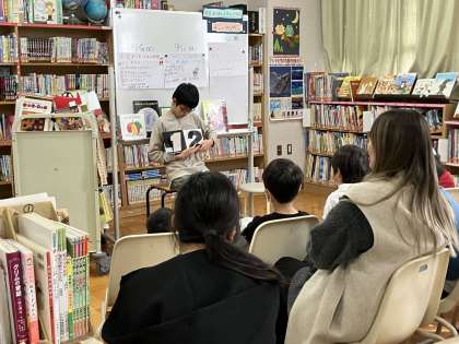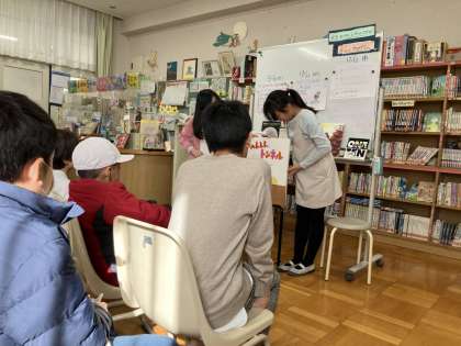 図書委員のメンバーが、20分休みに読み聞かせをしている様子です。