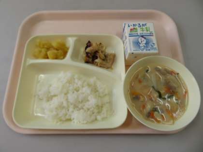 ・ごはん ・牛乳 ・鶏肉の塩こうじ焼き ・かす汁 ・くりきんとん
