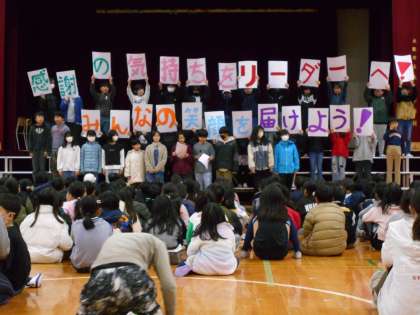 今日の朝会では校長先生から「バトンを繋ぐ」についてお話がありました。3月に入り、3学期も残り少なくなりました。4月からはみんな、一つ学年が上がります。6年生は次の6年生にバトンを、今の5年生は次の5年生に・・・というように各学年がバトンを受け取り、頑張っていこうというお話でした。