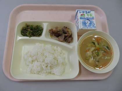 ・ごはん ・牛乳 ・豚肉のしょうが焼き ・とうふのみそ汁 ・じゃこピーマン