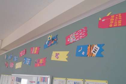 子どもの日は過ぎてしまいましたが、3年生の教室にはカラフルな鯉のぼりが泳いでいます!