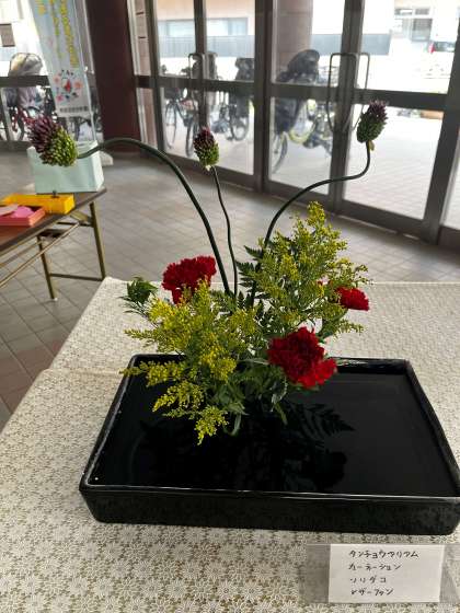 地域の方がエレベーターホールに生けてくださっている5月の花はカーネーションです。「母の日」ももうすぐですね。