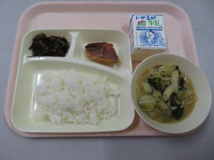 ・ごはん ・牛乳 ・あかうおのしょうだれがけ ・みそ汁 ・ひじきのいため煮