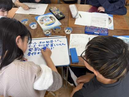 発芽の条件について、観察しわかったことを班で話し合い、まとめました。