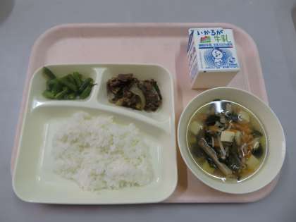 ・ごはん ・牛乳 ・プルコギ ・とうふとわかめのスープ ・さんどまめのナムル