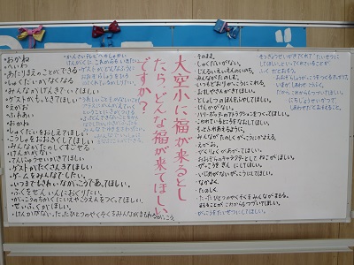 そこで、今日のテーマは「大空小に福がくるとしたら、どんな福がきてほしいですか?」です!