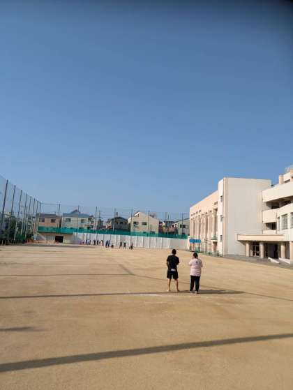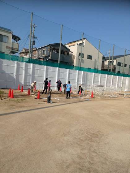スポーツテストのため、50メートル走と砂場の準備がおこなわれました!