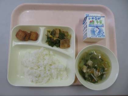 ・ごはん ・牛乳 ・ホイコウロー ・中華スープ ・あつあげのピリ辛じょうゆかけ
