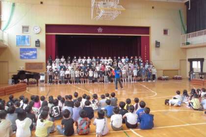 6月6日に控えた「創立記念コンサート」のために、全校児童で流れの学習をしました。