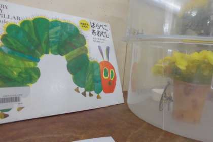 3年生の外国語活動で読み聞かせした“The Very Hungry Caterpillar”(はらぺこあおむし)