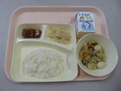 ・ごはん ・牛乳 ・八宝菜 ・あつあげの中華みそだれがけ ・もやしの中華あえ
