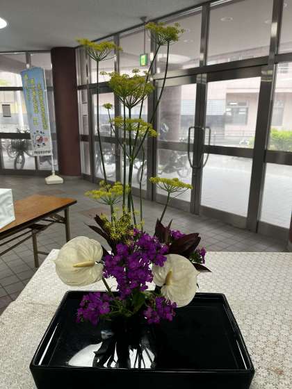 プラスチックのような光沢を放つのは、アンスリウムです。白い花弁のように見えるのは、棒状の花を支えるために発達した葉だそうです。