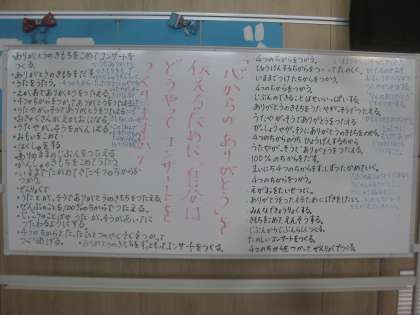 「私たち6年生は、ありがとうコンサートが大空小での最後のコンサートです。今まで高めた四つの力を使い、全力で大空のリーダーとして取り組みます。『自分から』そして『自分らしく』ありがとうコンサートをつくりあげましょう。」