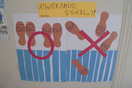 環境委員会が作ったトイレスリッパの掲示物です。 こんな風にきれいに並んでいると気持ちがいいですね!