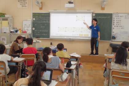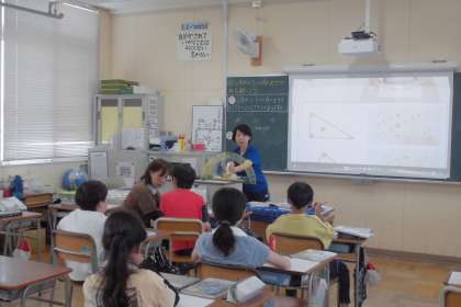 タブレットのデジタル教材を使って、きれいに三角形を敷き詰め、3つの角が合わさっているところを探しました。