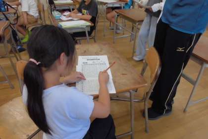学年や教科、学習内容ごとに色分けされた棚から、自分たちに合ったプリントを取り出し、進んで学習に取り組んでいました。