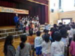 みんなが講堂に集まると、ピアノ演奏のバースディソングが流れ、誕生月の人が壇上にあがります。うれしそうに行く子もいれば、照れながら行く子もいます。また、子どもたちだけでなく、サポーターや地域のみなさん、教職員も誕生月には主役になります!