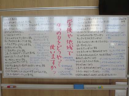 そこで、今日のテーマは「学校や地域で4つの力をどうやってつかいますか?」です。