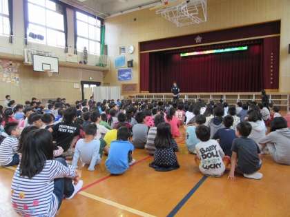 みんなが笑顔で朝に休みのときの話をしてくれたことを喜ぶとともに、熊本では地震から3週間たった今も、たくさんの人が避難生活をし、しんどい思いをしていることが伝えられました。