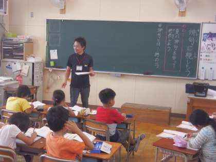 ようこそ大空の先生とは、ふれあい科の授業の一つで、教職員がたくさんの子どもたちとふれあうことを目的に、自分が担当する学年や学級以外で授業をします。