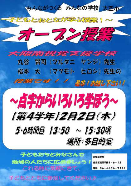 点字を作ったり、マッサージのやり方を教えてもらったりと盛りだくさんの授業です。みなさんも子どもたちと一緒に学びませんか♪