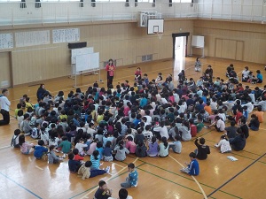今年度も、月曜日(月曜日が休みの場合は火曜日)の1時間目は全校朝会・全校道徳です。全校道徳は、1つのテーマ(今、子どもたちにとって必要なこと)を小グループで伝え合い、全体で共有します。子どもだけでなく大人たちも一緒に考え、みんなに伝えます。