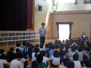 放送後、子どもたちは一回の指示で、すぐに教室から飛び出し、講堂まで走ります。