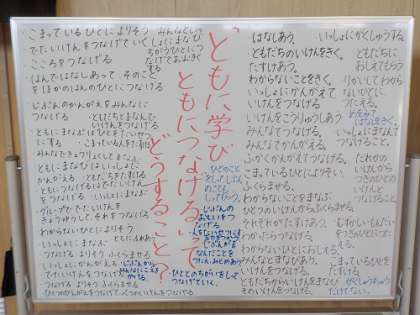 そして、テーマが伝えられます。今日のテーマは「『ともに学び ともにつなげる』ってどうすること?」です。