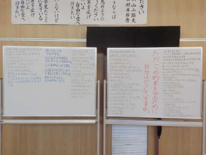大空小には、たった一つの約束(自分がされて嫌なことは人にしない 言わない)があります。二つの事例とも、たった一つの約束は守れていません。やりなおし(校長室に行って自分のしたことを大人に伝え、これからの自分の行動を考える)もできていません。