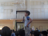 今日も、大きな声であいさつをします。6月3日(土)の大空創立記念コンサートまで2週間になりました。コンサートのテーマである「大空に広げよう あふれる笑顔 かがやくいのち おめでとう! OZORA!!」をみんなで言った後、全校道徳が始まります。