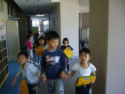 学校の中では小さな2年生が、もっと小さな1年生の手をひいて歩く姿は、とっても大きく見えました。