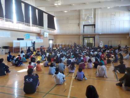 先週の水曜日に、大空のリーダー(6年生)が修学旅行で学んだことを、一人一人自分の言葉で伝えました。