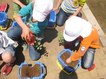 植えたミニトマトを手でさわってみたり、におってみたりしました。