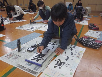 ただ書くだけではなく、みんな同じ文字でもどういう思いを込めて書くかを考えながら、ひとりひとりが思いを乗せて筆をはこびました。