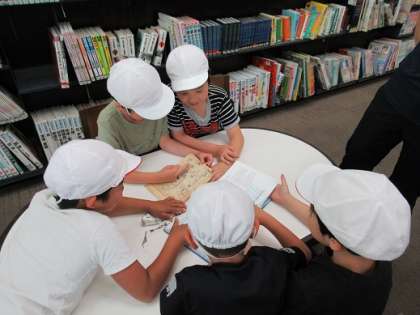図書館の場所が書いてある大阪市の地図にみんな興味津々!!