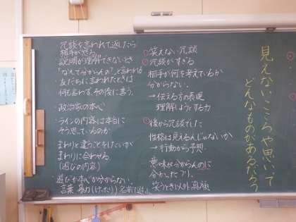 子どもの考え:見えない心や自分の思いをもっと声や行動に出して相手に伝えたい。ゆっくり時間をかけて分かり合うのもいいと思った。
