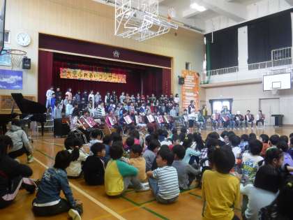 いつも学校を一緒につくってくれる地域・サポーターのみなさん、コンサートを楽しみにして来てくださったゲストのみなさん、後輩たちの応援に来てくれた卒業生、子どもたちとともに学び続ける教職員が音楽を通してふれあいながら、一緒にコンサートをつくっていきます♪