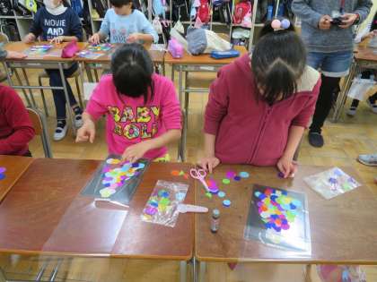 子どもたちとともにプラバンでチャーム作り…