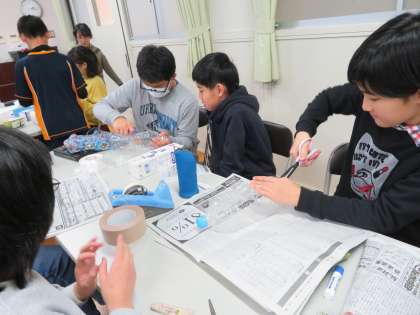 今まであたりまえに使えていたものの多くが使えなくなることを知り、身近なもので代用できないかをみんなで考えました。