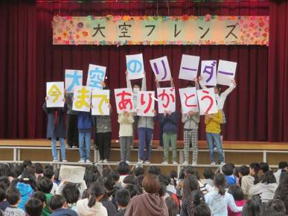 大空フレンズでは、大空のみんながリーダー(6年生)に「ありがとう」の気持ちを伝え、大空のみんなとの心のふれあいを深めます。